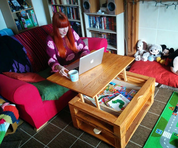 Shop our best selection of lift top coffee tables to reflect your style and inspire your home. 3.8 out of 5 stars. This table offers a full extending top that functions as a comfortable work surface perfect for activities such as working on your computer, dining or crafting. The rectangular top is crafted in a dark gray finish with handsome wood grain accents. When not using your magazines and remotes, keep a clean organized look by storing them inside the boost lift table.